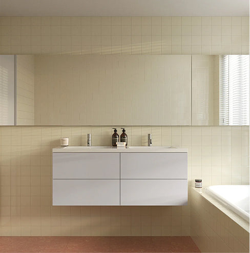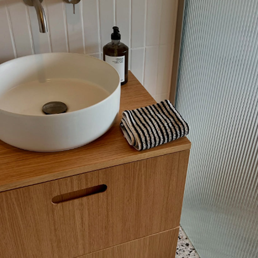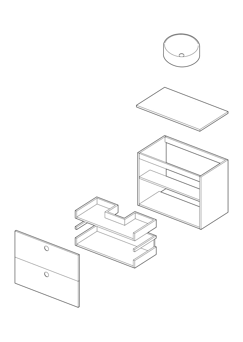 El Baño PAR incluye un cajón profundo de 35 cm con compartimentos optimizados y cajeado para el sifón. Está diseñado para maximizar orden y accesibilidad.