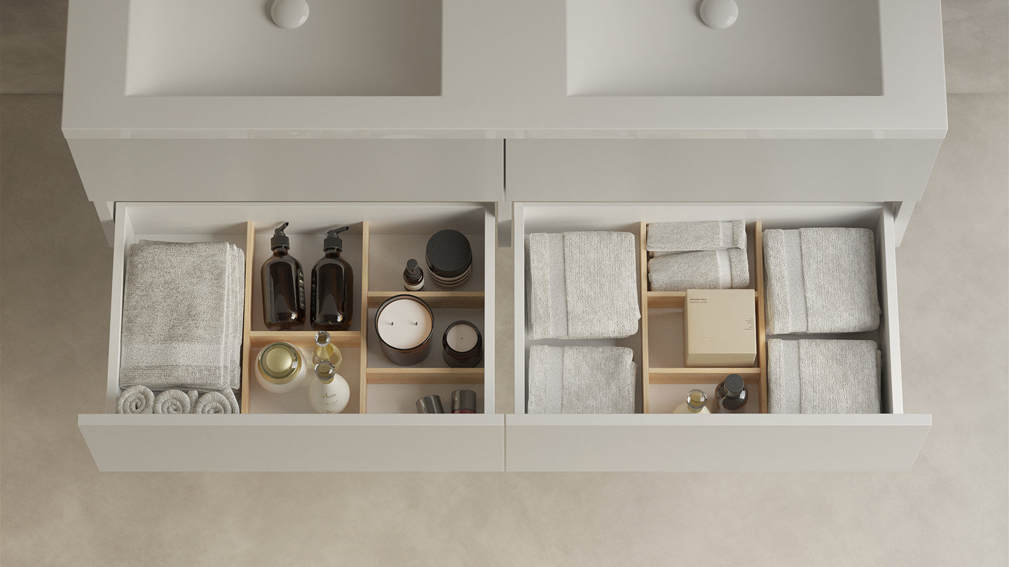 Todos nuestros muebles de baño incluyen soluciones de almacenaje diseñadas para optimizar el espacio y poner orden hasta en el último rincón.