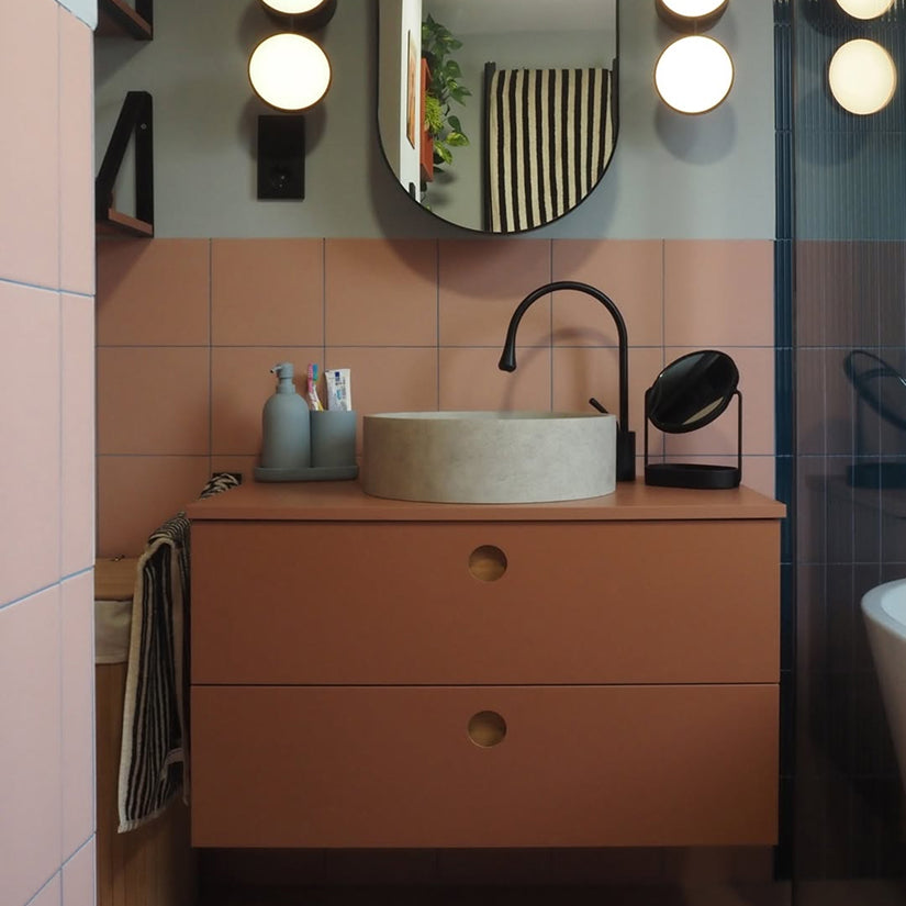 Sí. Nuestros muebles están diseñados para poder instalar encimeras de mármol, porcelánico o piedra, así como lavabos de sobreencimera.