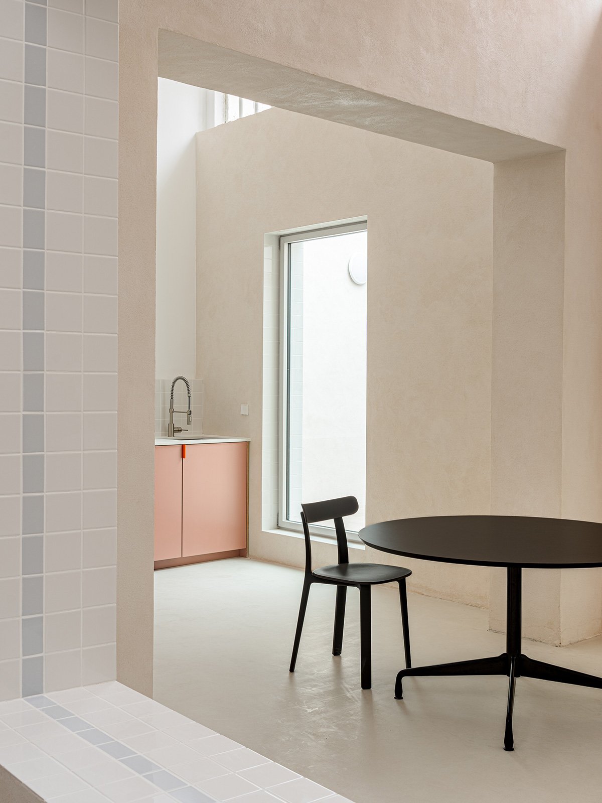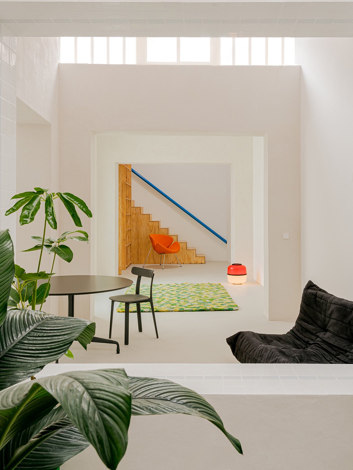 Para poder adaptar la vivienda a su nuevo uso, un espacio para trabajar, exponer y habitar, se dividió el espacio en estancias cumpliendo la distribución deseada por los nuevos inquilinos. De un esquema inicialmente abstracto, se materializó un diseño arquitectónico práctico que ahora organiza y define las distintas áreas de la casa.